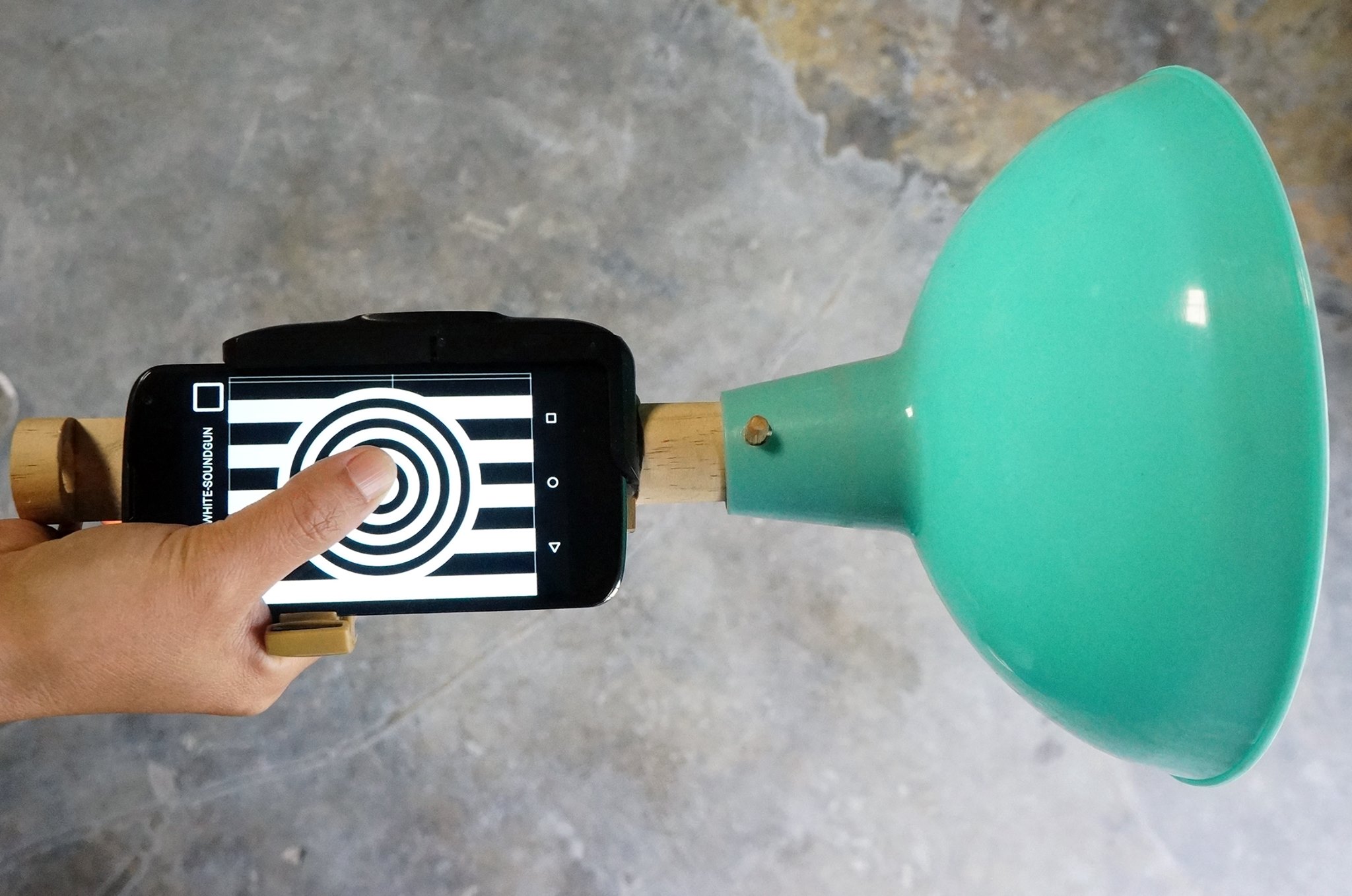 You can record 8 different sounds on the sound gun PureData software which is run by Mob Mu Plat. Each sounds can have specific angle of 360 and according to your phone’s position, specific sound is generated and mixed.