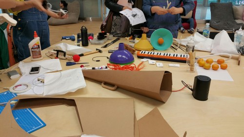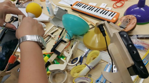 Performance at the Cort Guitar Workers ACTION! 6 participants are collected temporarily and each participant downloads different kind of instrument, like piano, flut, drum, accordion, voice and so on on thier smartphone and have a sound system. One participant plays a song and other participants make the song bigger and rich.